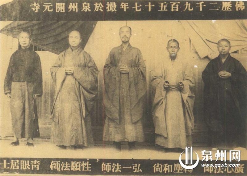 1930年初,弘一大师与叶青眼等在开元寺留影。(资料图)