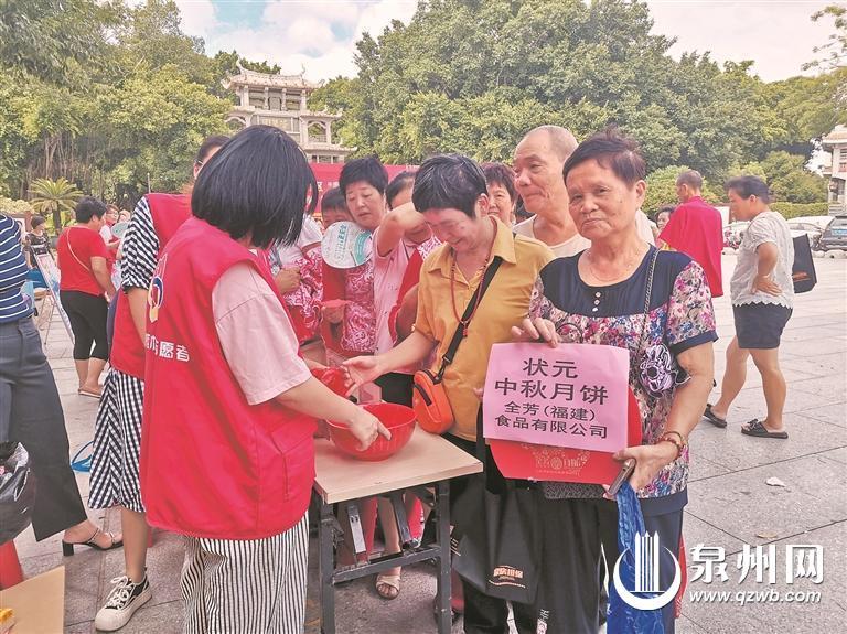 泉州网9月14日讯(融媒体记者陈玲红 通讯员王湘玲 文/图)丰富辖区居民的精神文化生活,增进邻里情谊,在中秋佳节来临之际, 由鲤城海滨街道党工委、海滨街道新时代文明实践所、海滨街道新门社区党委、新门社区新时代文明实践站主办,东南早报“夕阳红”读者俱乐部等单位协办的“我们的节日·中秋”暨“和谐邻里迎中秋 福籽同心爱中华”主题活动在芳草园广场隆重举行,现场人头攒动,一派过节的热闹气氛。