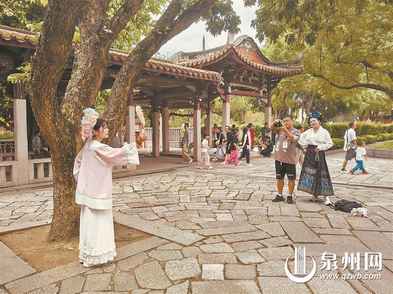 开元寺内,旅拍人员持证拍摄。 (杜婉琼 摄)