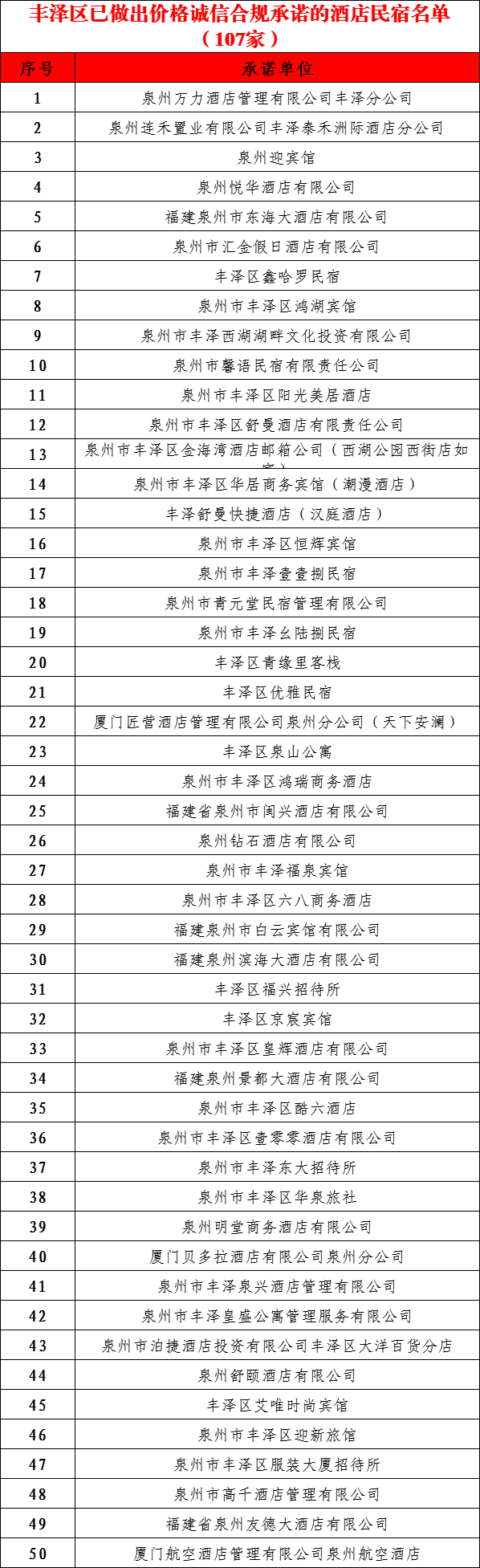 下方是已做出价格诚信合规承诺的酒店民宿白名单(将持续更新)