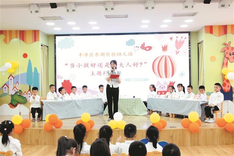 在教育实践过程中,如何以绘本启迪思维,是东湖实验幼儿园探究的方向。2018年,该园在全市幼儿园中首个引进“儿童哲学绘本课堂”,并开展“儿童哲学视角下图画书阅读的实践研究”课题,将儿童哲学教育与早期阅读教学相结合。这一创新的教育模式,不仅培养了幼儿的批判式思维、创新式思维和合作式思维,而且让幼儿在阅读中体验快乐,扩展迁移。