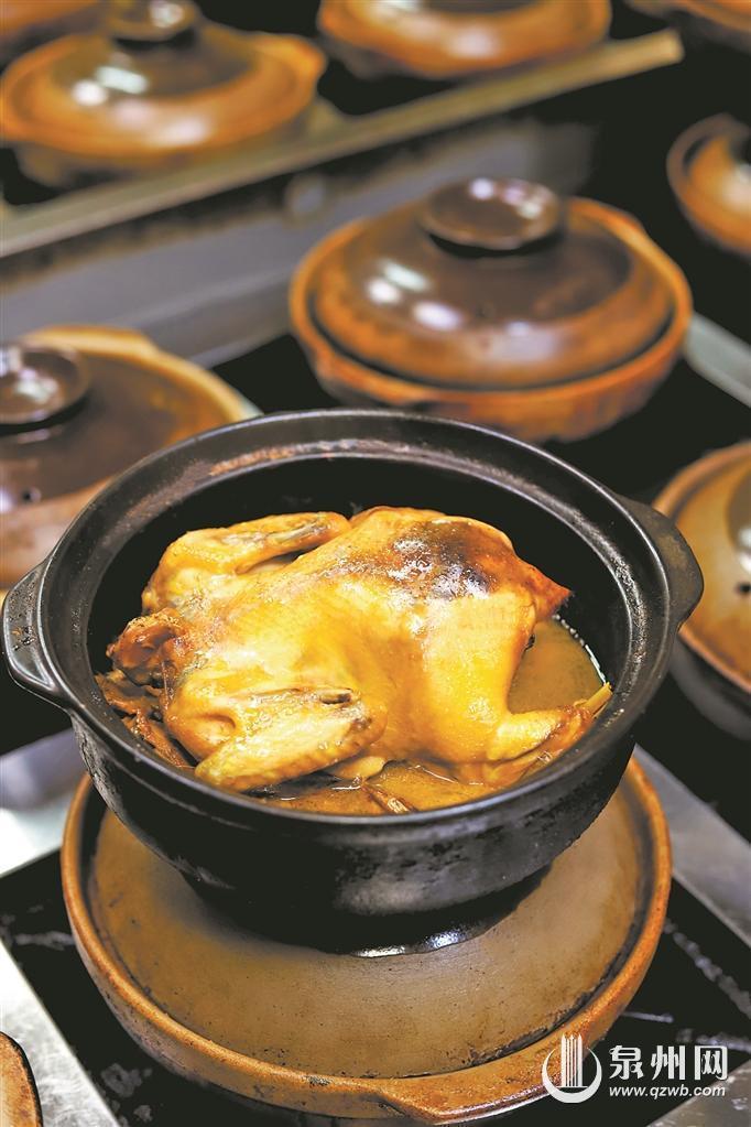 在泉州,鲤城崇福路的忠记盐烧姜母番鸭不负盛名。它具有汤水充盈的特点,鸭肉始终保持着柔嫩细腻的口感,酥软至极。在烹饪过程中,大厨会将整只鸭子先用盐进行腌制,随后配以姜片一同放入砂锅中烹煮,旨在突出鸭肉本身的鲜香美味。