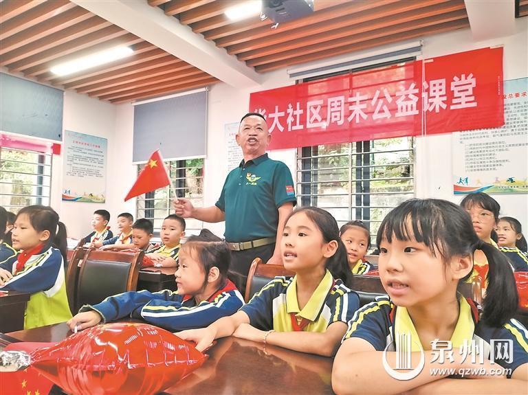泉州网9月26日讯(融媒体记者邱丰 通讯员许灿辉 文/图)“五星红旗迎风飘扬,胜利歌声多么响亮,歌唱我们亲爱的祖国,从今走向繁荣富强……”日前,泉州市丰泽区华大社区新时代文明实践站内歌声嘹亮,老党员与来自“华园课堂”的20余名少先队员共同唱响红歌,表达对祖国的美好祝福。