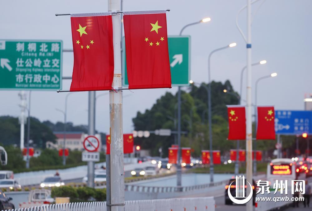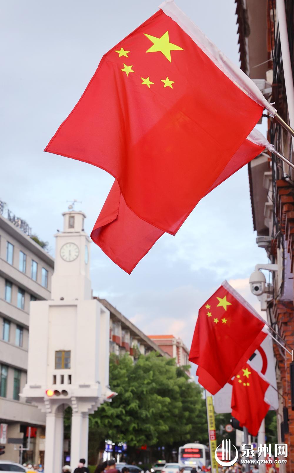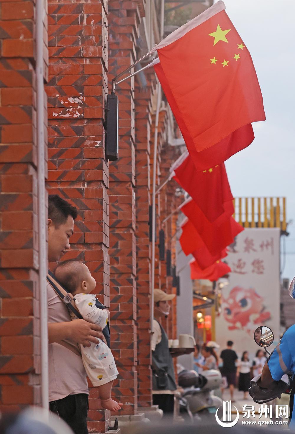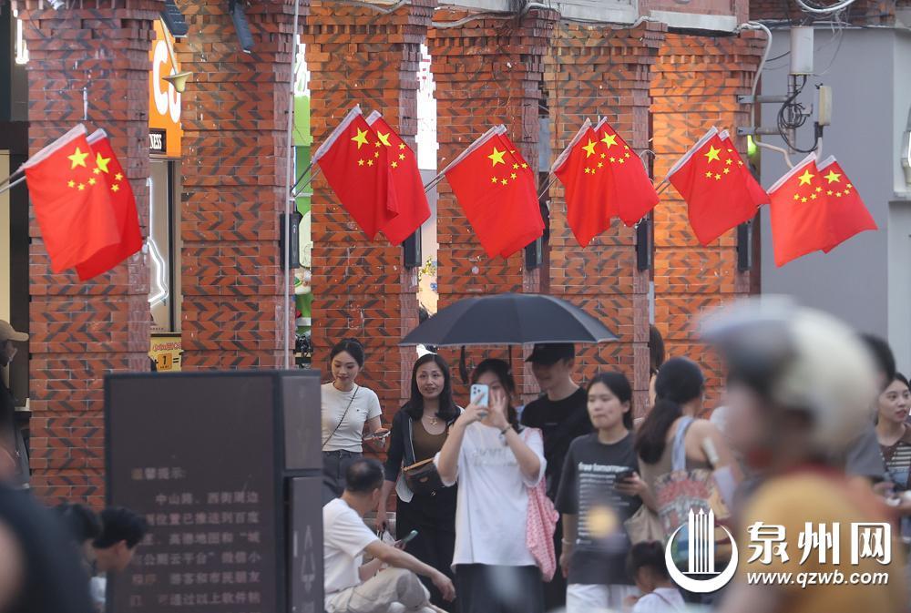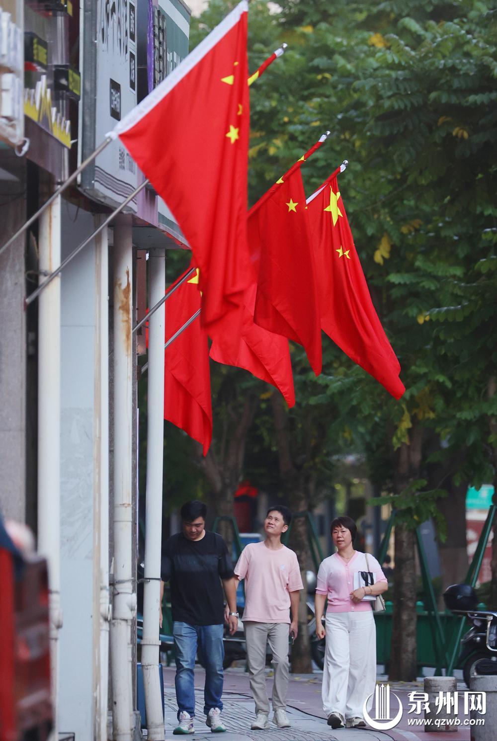 国庆将至,泉州市区街头五星红旗飘扬,满眼皆是喜庆的“中国红”,市民游客沉浸在欢乐祥和的气氛中。