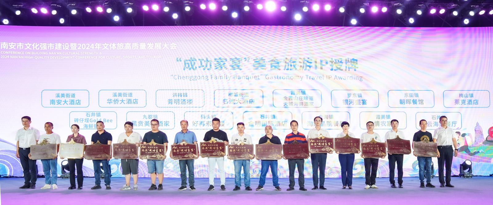 大会还发布了南安“成功家宴”推广计划,为南安大酒店、华侨大酒店等一批能够结合自身特色,将100道“成功家宴”系列菜品融入日常宴席,打造各具特色“成功家宴”的餐饮单位颁发“成功认证”牌匾。今年,南安以“郑成功事迹与精神”为发端,精选十余道珍馐入席,打造南安“成功家宴”。“家宴”一经发布,广受好评,并在“2024美食旅游发展大会”中,入选“2024美食旅游融合案例”。