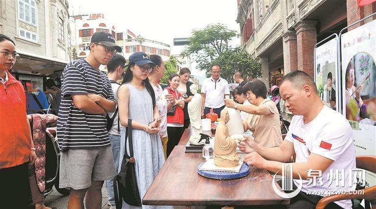 活动现场,“中国白·德化瓷”十佳讲解员王蓥蓥对德化陶瓷产业进行全面深入推介,同时,曾映雪、兰全盛、杨美丽等陶瓷工匠现场创作表演,进一步展示德化陶瓷精湛的雕塑工艺,让观众近距离感受德化陶瓷独特的艺术魅力。“原来精美的陶瓷是这样雕刻出来的。”围观市民啧啧称赞。