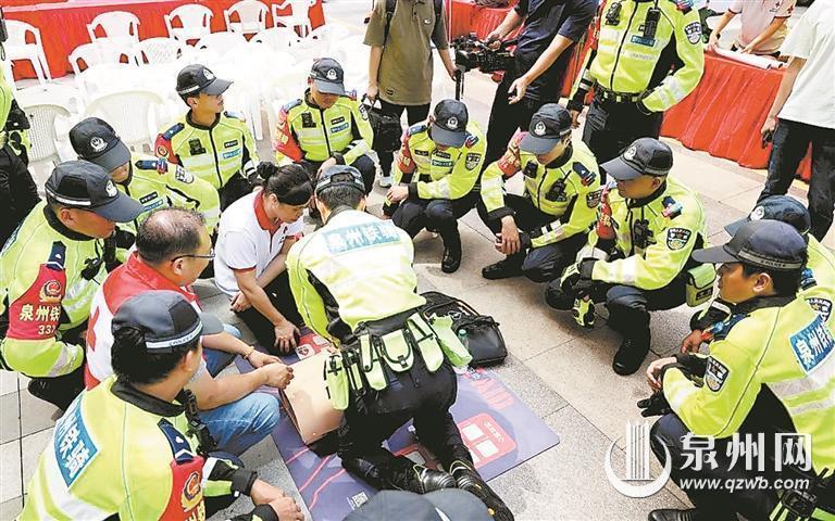 在实操培训环节,泉州市红十字现场救护培训中心工作人员为参加活动的交警民辅警、公交车驾驶员、外卖骑手、代驾司机等系统讲解了心肺复苏、AED管理及操作使用方法和创伤救护等急救技能,进一步充实了应急救护力量。一位外卖骑手在培训结束后表示:“每天在路上穿梭,万一遇到需要紧急救助的,那我今天学到的这些急救知识,真的能派上大用场。”
