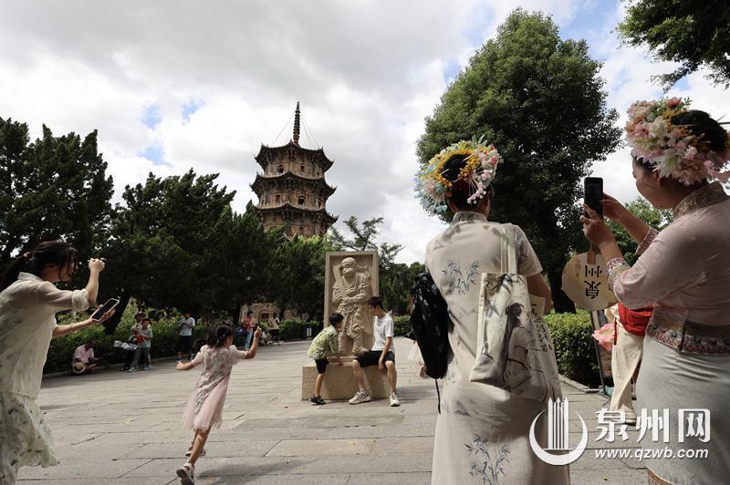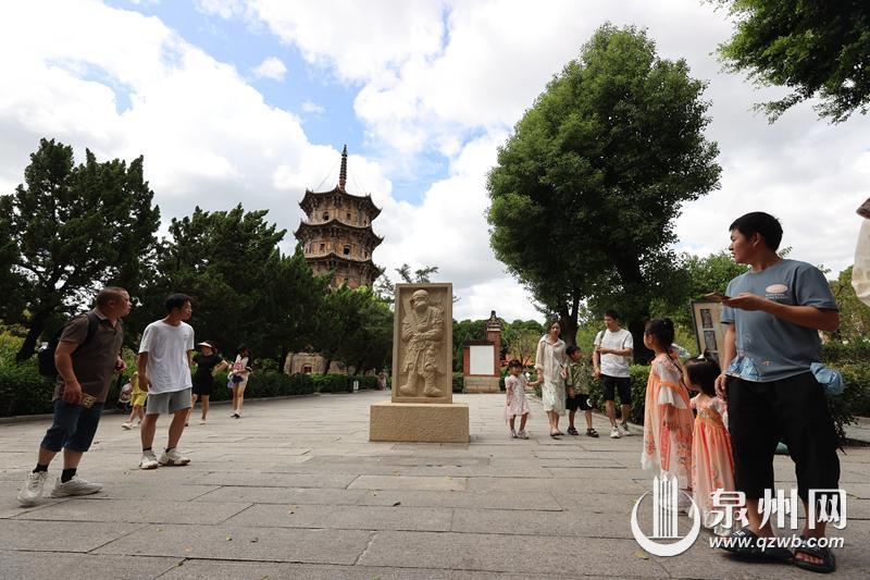 在开元寺西塔仁寿塔第四层东北面有一尊被认为是“齐天大圣孙悟空”原型的猴行者浮雕。有导游称,受国产大型游戏《黑神话:悟空》影响,拥有猴行者的西塔,今年游览热度比往年提高了许多,不少人慕名而来,少不了与西塔和猴行者合影。