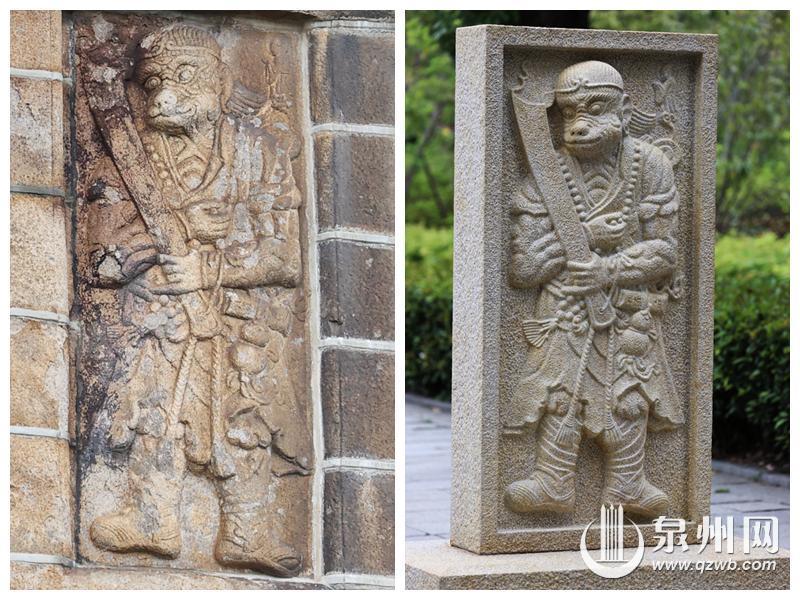 10月1日,开元寺西塔附近的小广场上,猴行者复刻石雕受追捧。