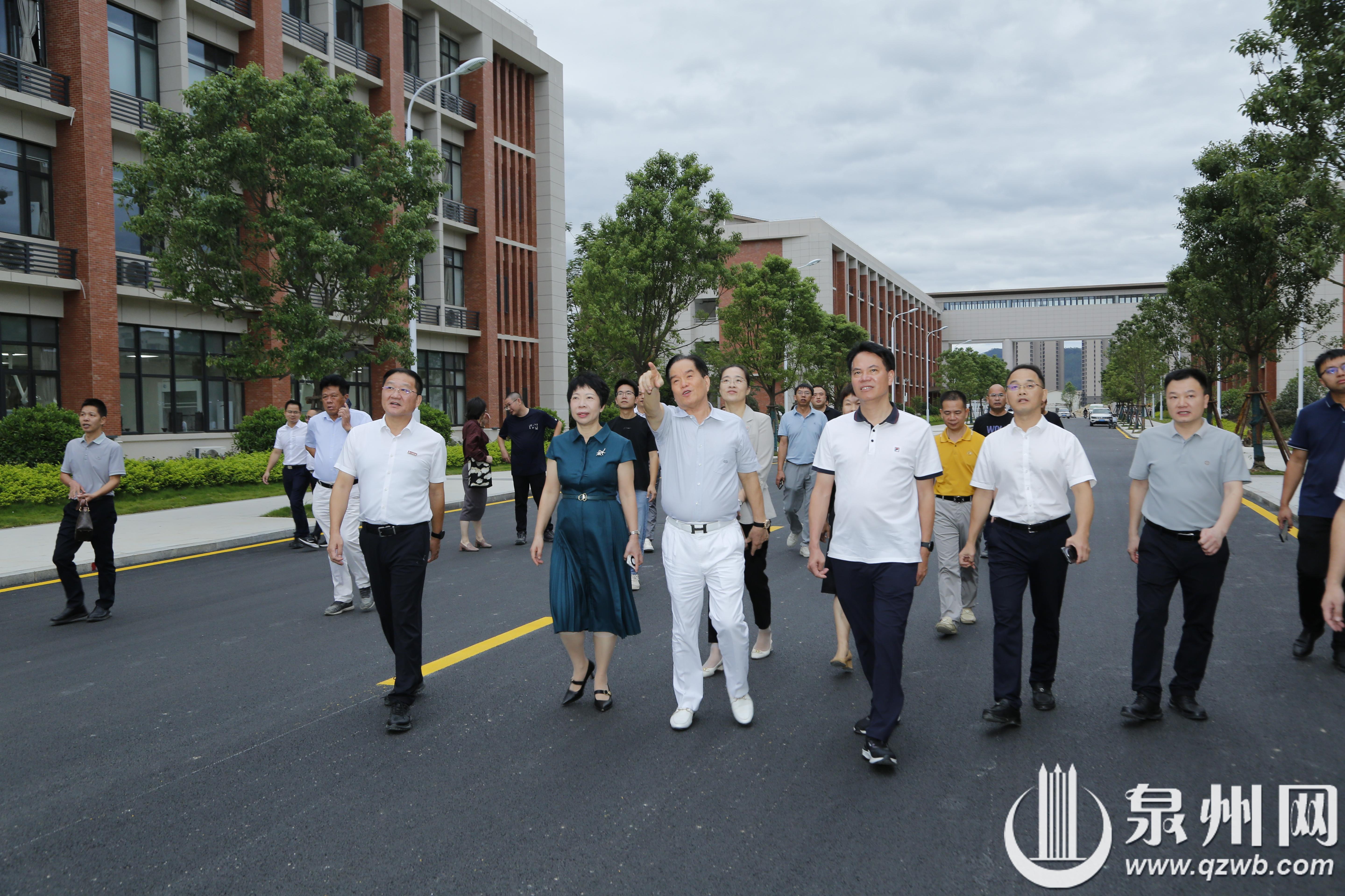 泉州网10月4日讯 (记者黄怡)在举国上下同庆新中国成立75周年之际,泉州医高专南安校区的校园里迎来了一批特殊的访客。10月3日下午,中共泉州市委副秘书长、办公室主任吴忠溪,泉州市教育局副局长陈军宣,中共南安市委副书记傅文星等领导莅临南安校区实地考察并检查指导新生开学准备工作。厦门源昌集团董事长侯昌财,在家校领导及学校相关部门负责人参加考察。