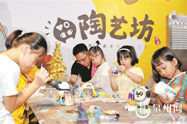 国庆长假期间,德化县顺美陶瓷文化生活馆游人如织,游客们自己动手拉坯、上色,体验手工制作陶瓷的乐趣,乐享欢乐假期。图为游客体验给陶瓷上色。(融媒体记者张九强 摄)