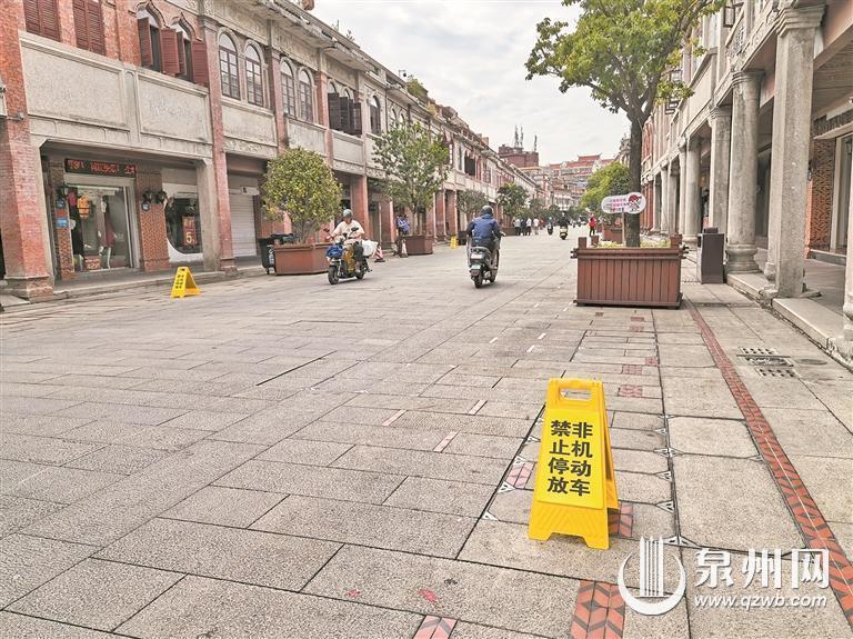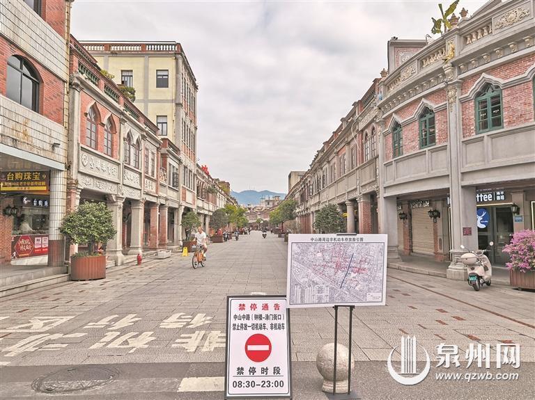 “南国多雨天,骑楼可避风”,始建于20世纪20年代初的泉州中山路,是我国保存最完整的联排式骑楼建筑商业街,入选中国历史文化街区。近年来,西街东段、中山中路分时段交通限行已实现常态化。在中山路与打锡街路口,一块交通指示牌写着:“中山路(打锡街至涂门街)1.禁止机动车通行2.8:30—22:00禁止三轮车通行”。市民对于机动车禁行已经习以为常,而此次通告新增中山中路(钟楼—涂门街口)全路段禁停措施,即08:00—23:00内禁止停放一切机动车、非机动车。