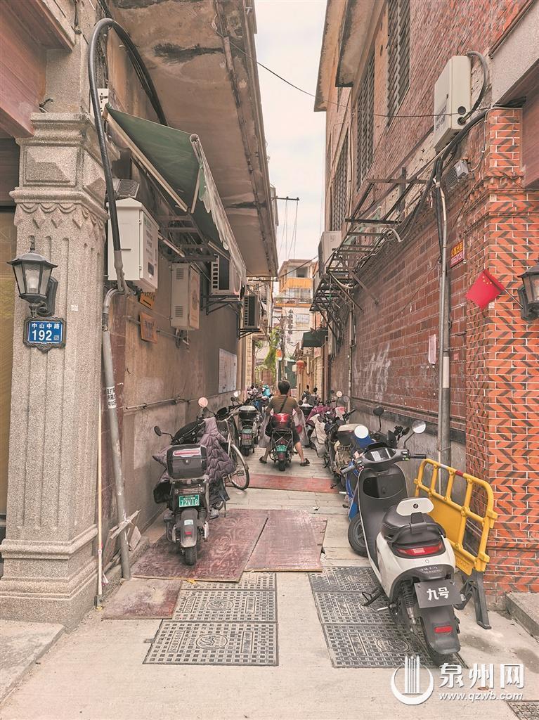 记者在中山中路192号旁的小巷子看到,巷子两侧各停了一排电动车,道路变得很窄。花巷也停满了多排电动车,原本宽敞的道路也显得拥挤起来。而打锡街非机动车停车场也有多部电动车停放,从该停车场走到中山路仅需1分钟。