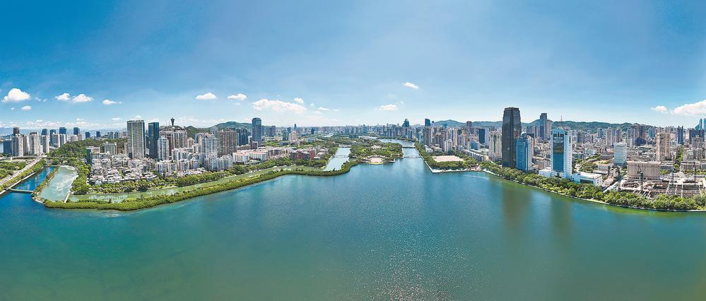 厦门筼筜湖(无人机航拍)为厦门建设高颜值生态花园之城画上点睛之笔。福建日报记者 王毅 摄