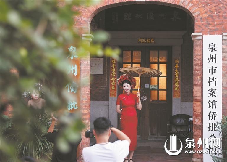 游客在中山路陈光纯故居改造而成的泉州侨批馆拍照,感受浓浓的南洋味。