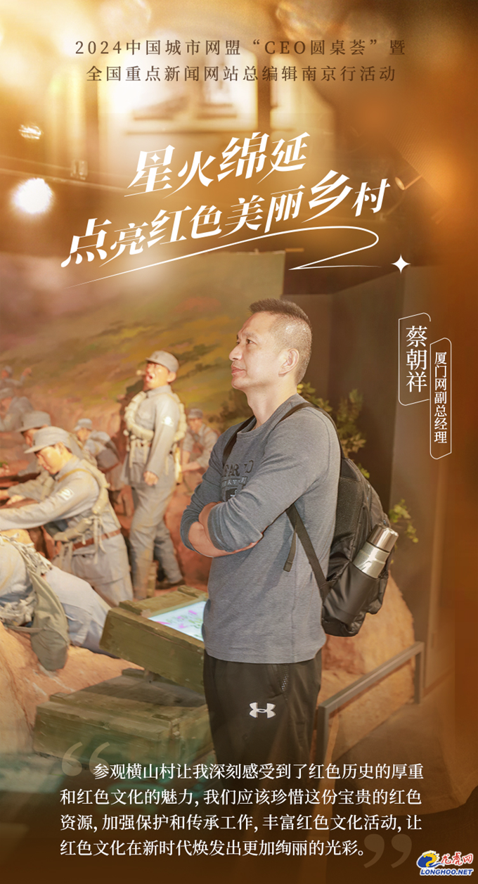 龙虎网讯(记者 石潇梅 设计 孙小培)10月24日,2024全国重点新闻网站总编辑南京行活动走进江宁区横溪街道横山村。网媒总编们边听边看,纷纷送上寄语,期待红色美丽村庄更红更美。