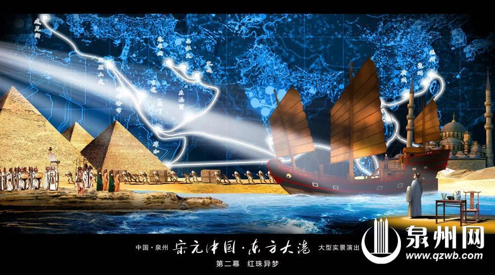 “可以说,整个演艺就是围绕着宋元时期泉州港以及海上丝绸之路上的贸易场面去逐一呈现,带游客体验宋元中国文化、闽南文化及海丝文化。”山水盛典文化产业股份有限公司策划总监李东蔚介绍,项目将以独特的玩法体验,带领游客穿越时空,回到繁荣昌盛的宋元中国,感受千年前东方大港、光明之城泉州繁华的世界商贸景象。游客来到这“东方大港”,便会成为宋元时期世界各地的商人中的一员,在这座城邦里搜寻各种货物,了解茶、瓷、铁等各种泉州物产的前世今生,在通商文牒中盖章交易,并在入夜时分前往海港,为远行的商船送行。该项目还将宋元中国·东方大港的商贸体验、历史故事、世遗文化等进行还原,创作和设计十余个大小不一的散点演艺、互动装置体验、沉浸式互娱,让游客在经商游玩中,看尽宋元中国故事。现场还有民俗祭祀巡游、茶状元巡游、各国商队巡游、戏曲巡游等全方位多角度体验。演出将利用先进的实景演出舞台科技,带来视觉、听觉与心灵的多重震撼。