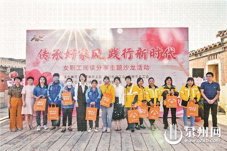 泉州网11月9日讯(融媒体记者龚翠玲 通讯员王子凡 文/图)11月6日,由福建省总工会、泉州市总工会、南安市总工会联合举办的“传承好家风 践行新时代”女职工阅读分享主题沙龙在南安市蔡氏古民居家风家训馆举行。新就业形态女职工、企业一线女职工、女劳模、最美职工家庭代表等共计100余人参加活动。