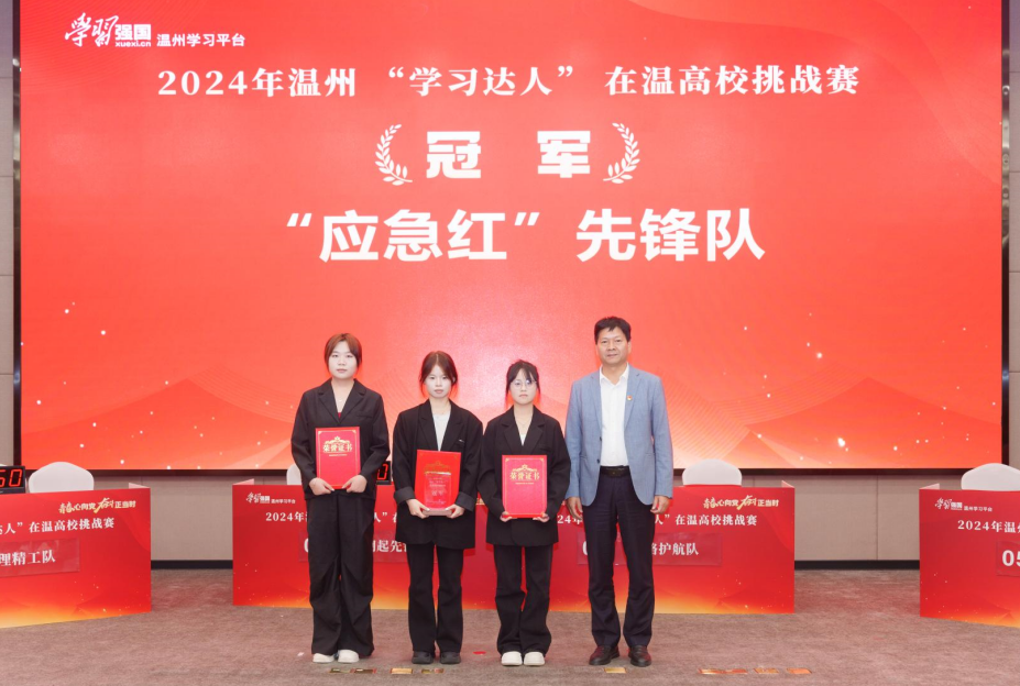 比赛现场,选手们全神贯注、沉稳应战、你追我赶,不放弃任何一个得分机会,展现出过硬的理论素养、丰富的知识储备及强大的临场应变能力。现场掌声阵阵,高潮迭起,精彩纷呈。最终,来自浙江安防职业技术学院的“‘应急红’先锋队”凭借扎实的理论功底、出色的临场发挥斩获冠军。领队潘秋璟手捧奖杯,难掩喜悦:“这次比赛既是竞技场又是思政大课堂,我们将以此次比赛作为新起点,继续用好用活‘学习强国’平台资源,学以致用。”现场,来自温州理工学院的“循理精工队”获得亚军,来自温州科技职业学院的“有请下一队”获得季军。温州大学被授予优秀组织单位。