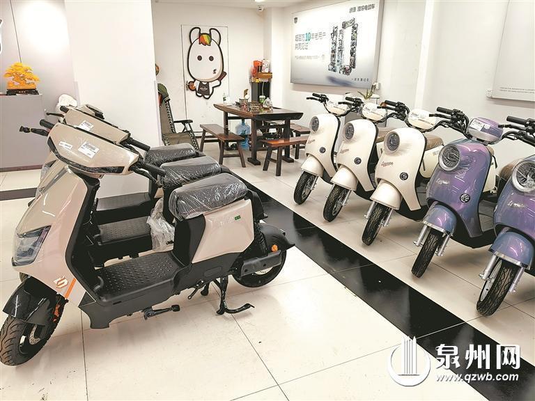位于温陵南路和涂门街交界处有一两家知名电动自行车销售门店,这里有少量新国标车在售卖。店内工作人员说,新车13号才陆续到货,但数量有限。