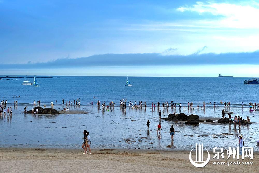 今年以来,泉州市各地文旅产业持续发光发热。作为滨海城市的石狮,如今的海岸文旅“热辣滚烫”,从十里黄金海岸,到蚶江、永宁、祥芝等滨海乡镇,都开发各自特色的滨海文旅,打造一个个滨海宝藏打卡地。图为石狮红塔湾的沙滩上,周末游客络绎不绝。(融媒体记者陈晓东 摄)