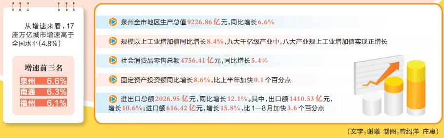 据澎湃新闻报道,26座万亿GDP城市日前均已发布今年前三季度经济运行数据,泉州以6.6%的增速继续领跑。