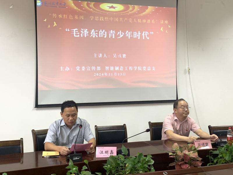 泉州网11月16日讯(记者 洪荣堆 通讯员 李嘉元 苏楠 张夏洁)11月13日下午,由黎明职业大学党委宣传部、智能制造工程学院共同举办的“传承红色基因、学思践悟中国共产党人精神谱系”讲座,邀请到中共泉州市委宣传部“党史学习教育市委宣讲团”成员、泉州市大数据服务中心主任吴彧寰讲授专题讲座。