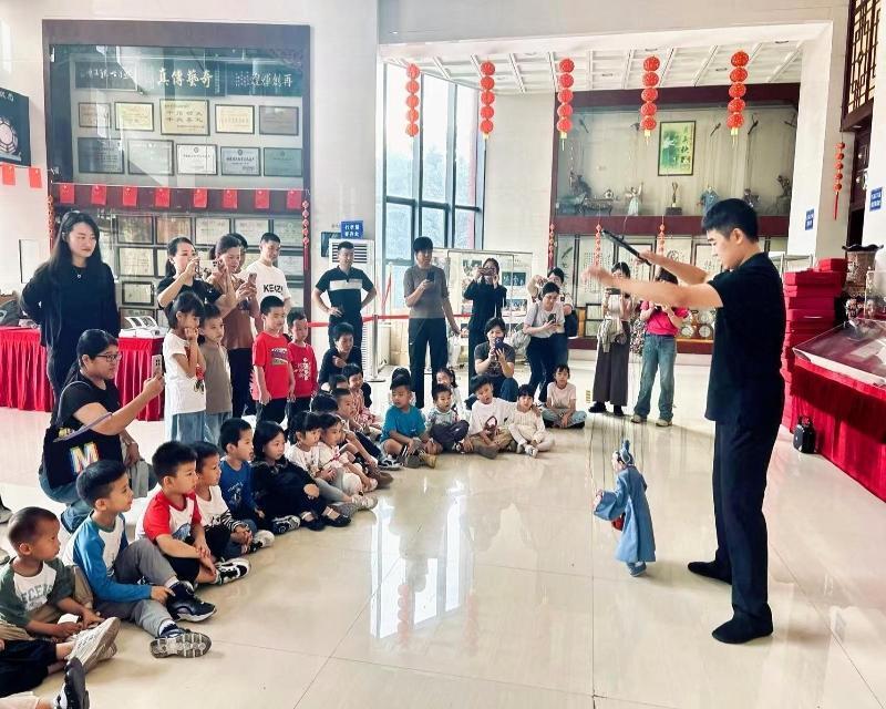 泉州提线木偶戏是一门古老珍稀的传统戏剧剧种。表演时,艺人用线牵引木偶表演动作,演唱以泉州南音为基本声腔,文乐弦管吹,武乐钲锣鼓。作为世界级非物质文化遗产名录中的瑰宝,木偶戏的表演剧目及木偶头雕刻工艺,承载着丰富的历史文化内涵。为增进幼儿对泉州优秀非遗文化的了解,近日,泉州幼师附幼2023级2班的孩子在家长的带领下,走进泉州市木偶剧团开展亲子研学活动。大家参观了木偶剧团的展厅,在工作人员带领下探寻偶剧的前世今生, 观看了90后新生代演员为大家表演的提线木偶《小沙弥下山》,活泼逗趣、诙谐生动的节目,引来孩子们阵阵掌声和不时惊叹。表演结束后,孩子们上前与演员积极互动,了解木偶的结构与操作方法。此次活动,让家长与孩子又一次沉浸式领略到木偶戏的神奇,体验了泉州的非遗之美。(林颖 文/图)