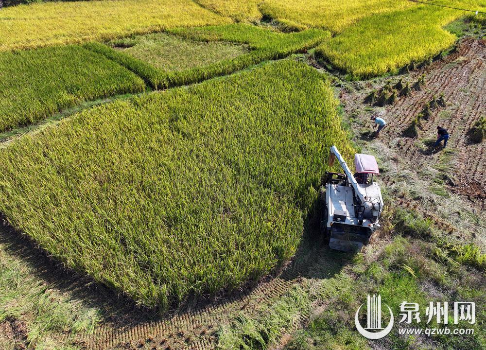 收割机开始收割张联财试验田里的晚季稻(摄于2024年11月6日)。