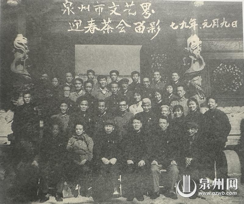 1979年,蔡友辉(前二排右八)参加泉州市文艺界迎春茶会。