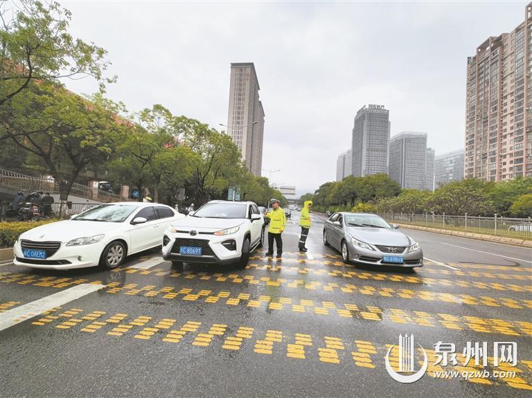 泉州网11月21日讯(融媒体记者 张晓明 文/图)连日来,泉州晚报持续跟进丰泽区城东街城东中学路段放学必堵的老问题,引发市民热议。在泉州晚报推动下,丰泽交警大队与校方联合制定新的交通组织方案,并发布通告称将于11月25日起对该路段启用电子警察设备,重点对汽车类机动车在道路上违反规定停放的交通违法行为进行拍摄取证并予以处罚。为了加大宣传力度,让家长提前适应新的交通组织方案,昨日中午,丰泽交警大队民警们到现场对违停家长进行劝导宣传。