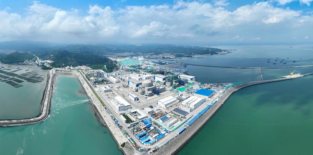 漳州核电是“华龙一号”批量化建设的始发地,也是目前世界上最大的“华龙一号”核电基地,规划建设6台百万千瓦级“华龙一号”核电机组,目前,已有包括1号机组在内的4台“华龙一号”核电机组开工建设。图为漳州核电站(无人机照片)。 (新华社发)