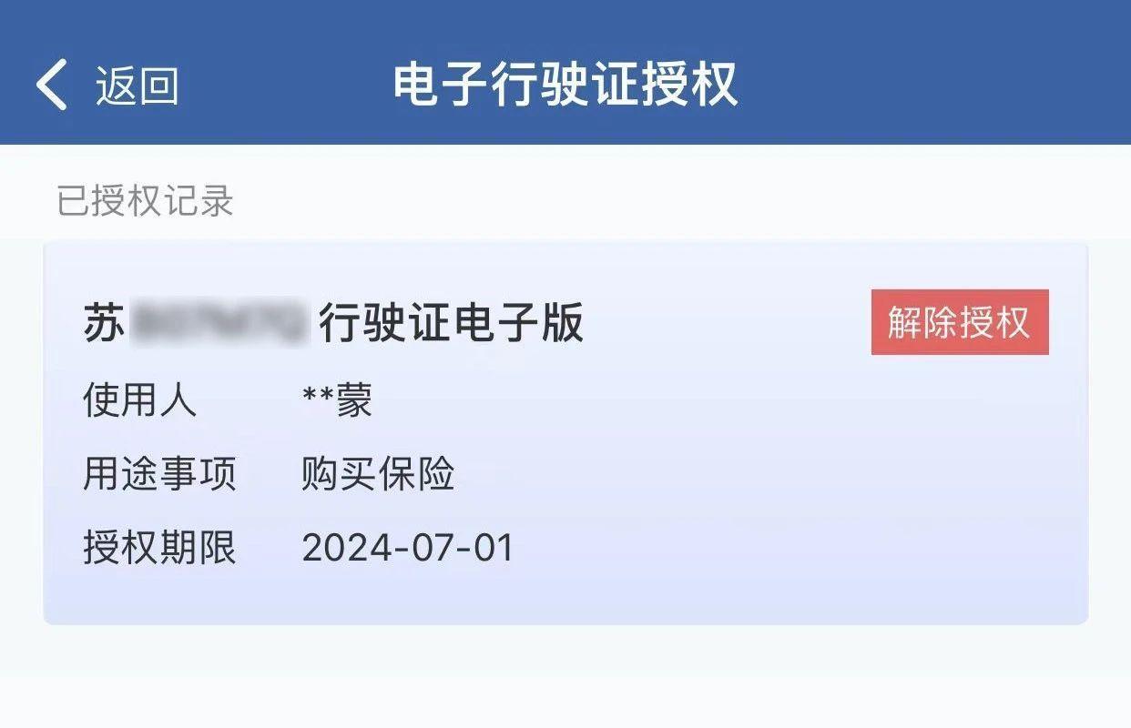 授权有效期最长为7个工作日。机动车所有人或单位法人、车辆管理人员可在授权列表中点击【解除授权】按钮中途解除授权,解除授权或授权到期后电子行驶证自动作废,被授权人“交管12123”App不再显示。
