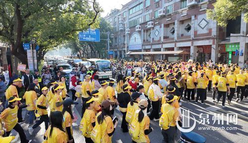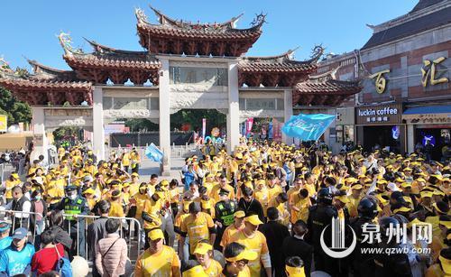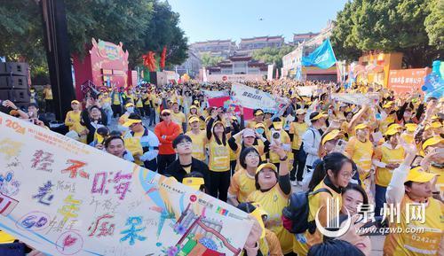 泉州网12月1日讯(记者 王柏峰 张素萍 文/摄)12月1日,在府文庙广场,随着一声声响亮的鸣锣声,2024年第六届海丝泉州古城徒步穿越活动启动。