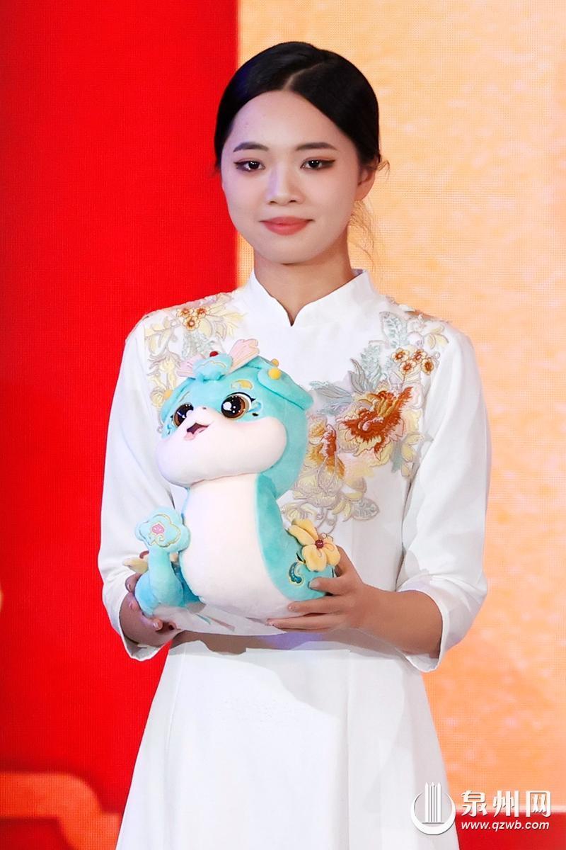 据悉,“巳升升”头部轮廓与脸颊上的螺旋形状来源于陕西扶风法门寺唐代地宫出土的银质鎏金如意,从头部的蝙蝠装饰到尾巴点缀的寿字盘长结,寓意“福从头起,尾随如意”;眉眼取自四川广汉三星堆遗址出土的青铜蛇形器的歧羽纹、“臣”字目纹,彰显着中华文明多元一体、兼收并蓄;身上由景泰蓝工艺刻画背部缠枝纹,寓意“生生不息”,由花丝镶嵌工艺勾勒出海棠、玉兰、桃花与牡丹,寓意“春回大地”。(泉州晚报社融媒体记者 陈晓东 摄)