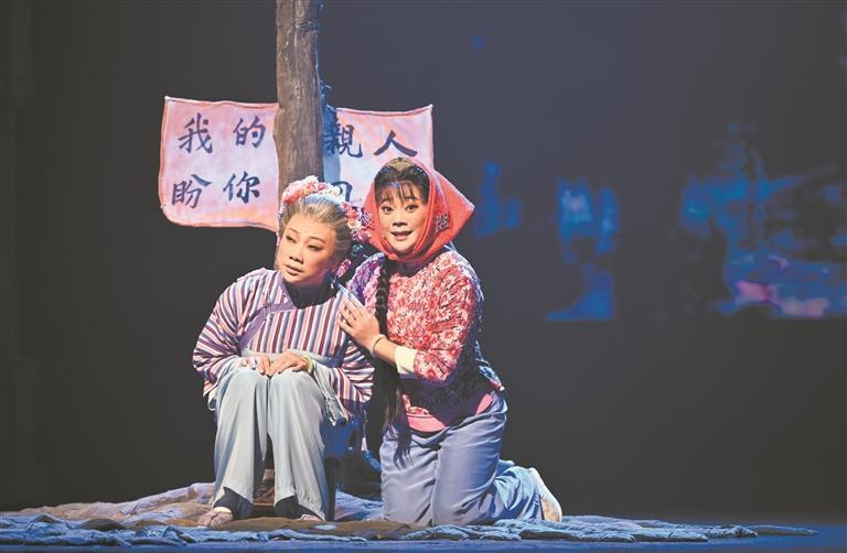 沉重悲怆和喜悦谐趣的变奏中,陈娟娟饰演乌英,跨度从30岁到80岁,通过肢体、声音的转化以及人物反应节奏来体现不同年龄段的特点。乌英这个角色最打动陈娟娟的地方,在于她对丈夫的执着期盼和对家庭团圆的渴望。无论处于哪个年龄段、哪个行当,这条情感主线始终清晰。她用情感投入排练,希望通过自己的表演带动年轻演员,让他们更好地理解和进入现代戏的创作,这种走心的传承方式发挥了积极作用。