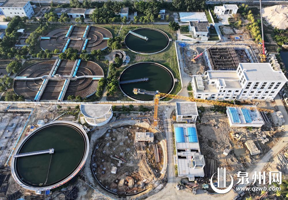 日前,记者航拍南安市污水处理厂三期远期工程项目施工现场。据悉,南安市污水处理厂三期远期工程项目于今年4月17日完成招标工作,主要建设内容包括均质池、多点进水多级AAO生物池、二沉池、高效沉淀池、污泥浓缩池、反硝化深床滤池、变配电房及机修车间等。目前,该项目已进入收尾施工阶段,预计年底通水试运行,设计处理污水能力为2万吨/日。