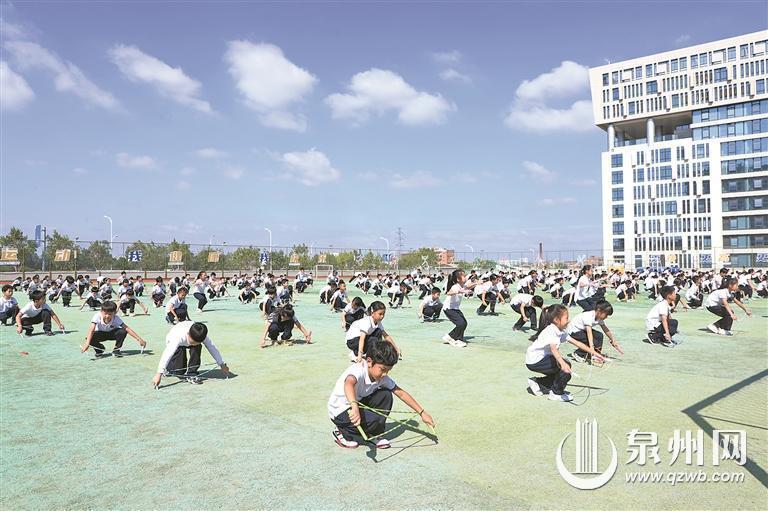 泉州网12月10日讯 (融媒体记者陈森森)伴随欢快的音乐,学生们在课间手持彩绳,翩翩起舞……近日,晋江市伟冠双语实验学校凭借其独具特色的花样跳绳项目,获得国家体育总局社会体育指导中心及全国跳绳推广委员会的推荐,在全国范围内进行展示,这不仅是对该校体育教育的肯定,更是对花样跳绳体育项目的有力推广。