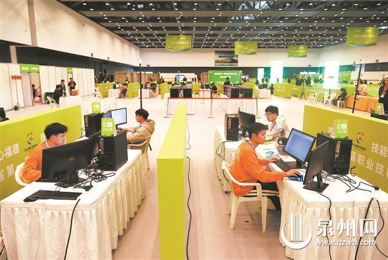 10日,福建省第一届职业技能大赛在泉州晋江开幕。大赛共设66个竞赛项目,将电工、茶艺师、花艺、时装技术、烘焙等贴近大众生活场景以及人社部近几年发布的人工智能、无人机装调检修、物联网安装调试等新兴职业作为主赛区竞技项目,吸引了来自全省20个代表队、1997名选手参赛。主赛区还精心策划了技能展示、八闽绝技展演等系列宣传活动,构建“赛、展、演”相结合的模式。图为参赛选手正在现场“比拼”。