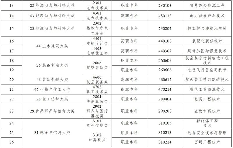 本次职业教育专业增补工作: