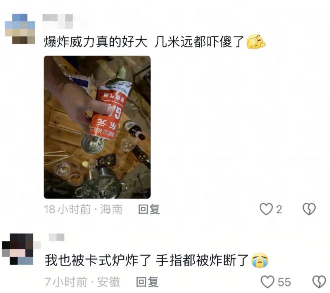 日前,某品牌创始人发视频称,自己在户外使用卡式炉烧开水时,炉子突然爆炸,导致受伤。评论区中,不少网友表示自己也遭遇过卡式炉爆炸的情况,还有人曾被炸伤。