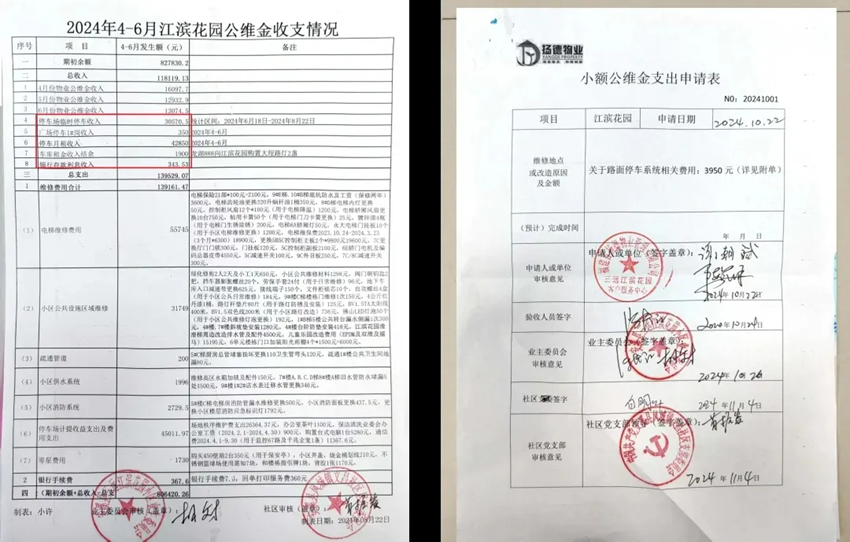 ▲小区收支情况公示及“业账社审”监管模式下的资金支出申请表