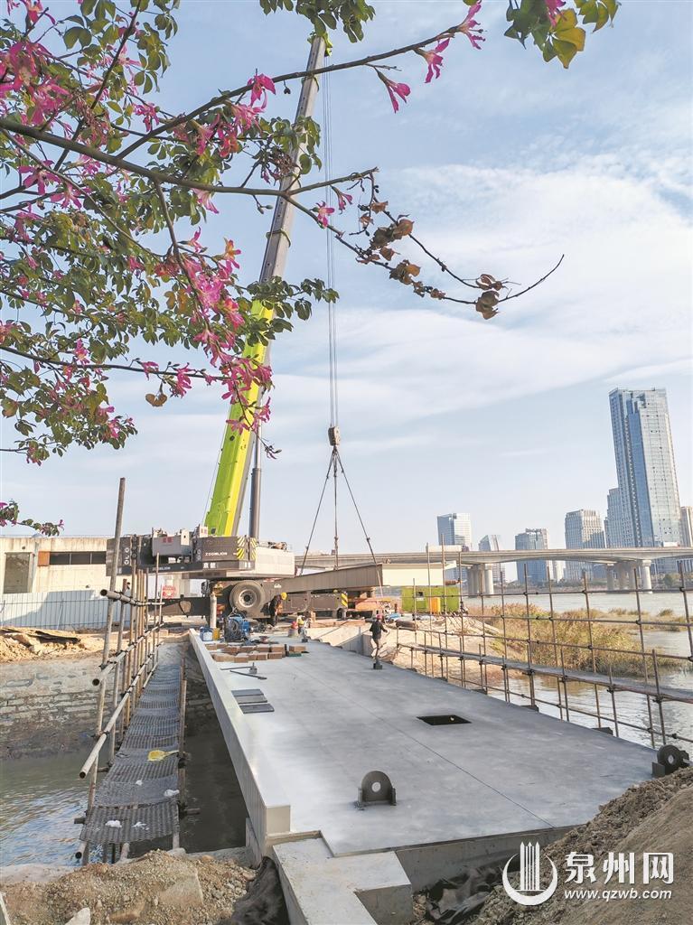 昨日下午,记者前往实地走访。下午3点多,在沉洲园江边慢道旁,一些工人和机器正在起吊一座浇筑好的桥。这座连接沉洲园与浦西园的小桥名为“听涛桥”。此前桥面材质为木头,涨潮时木材被浸淹,还有骑行经过的电动车碾压,虽经多次更换,但仍容易损毁。这次改造将提升桥面、扩大宽度,同时改造为水泥路面。记者了解到,沉洲园与汀洲园其他改造部分也在有序进行中。