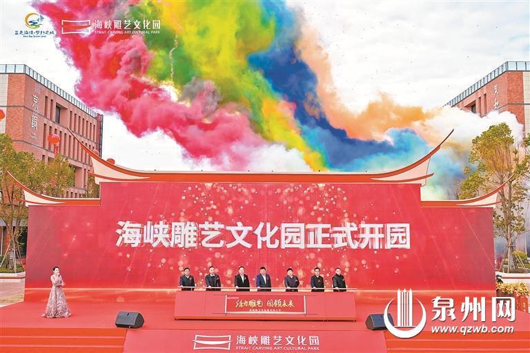 彩烟腾空,掌声雷动。18日上午,海峡雕艺文化园内,与会领导、嘉宾共同为海峡雕艺文化园开园启动推杆,见证文化与产业共融共生、千年雕艺再现风华。