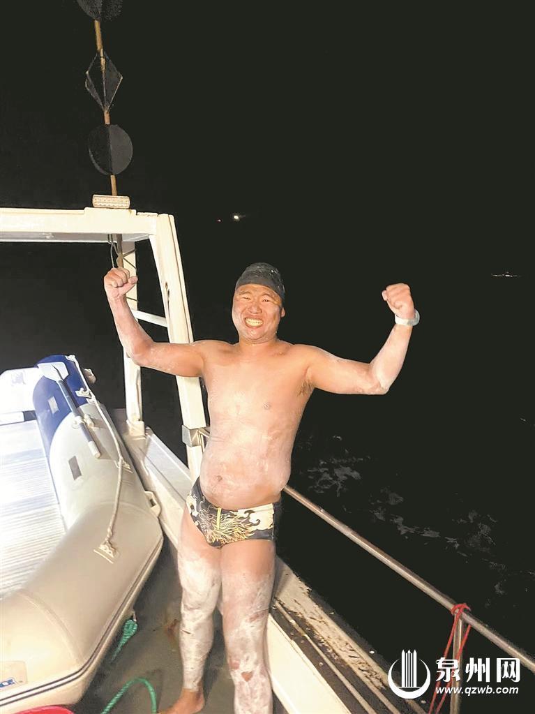 “很艰难,全身疼痛,无论如何,我完成了梦想,明天我要睡一天。”回忆起成功登陆后划过脑海的想法,他不由自主地笑出声来。他说,因为多次洋流影响,整个游程比计划多出20公里左右。今年35岁的林曙龙在学校时就酷爱体育运动。大学毕业后,他爱上游泳,即便从事的外贸工作繁忙,也一直未间断,后来成了惠安县游泳协会的会员。