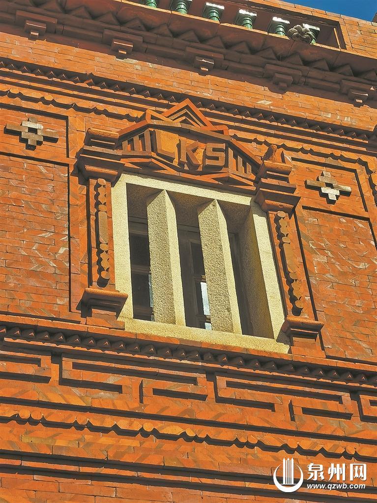 闽南红砖结合现代几何图形设计的窗,上面拼出该房间主人姓名首字母。(胡彦明 摄)