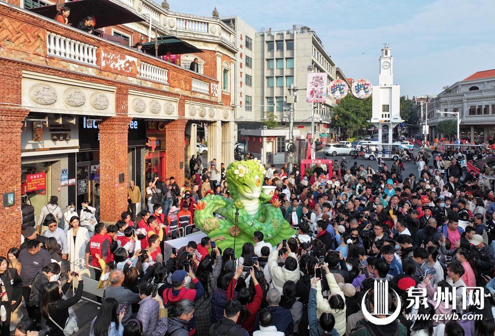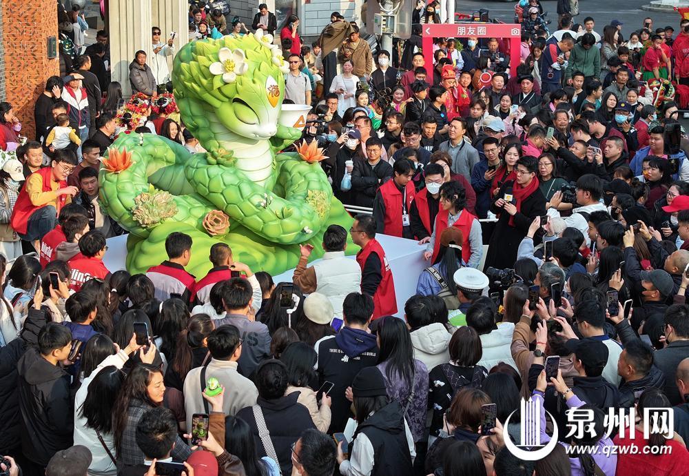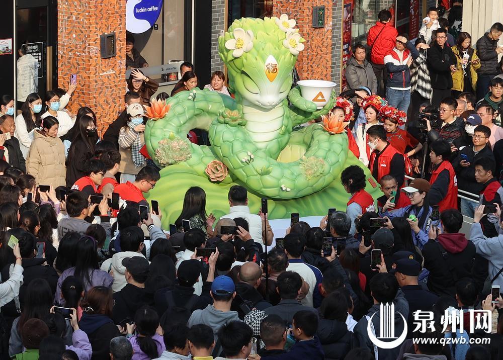 昨日下午,泉州蛇年生肖IP“七彩刺桐蛇”艺术装置首个作品“州州”亮相古城西街钟楼旁,吸引众多市民游客驻足围观,正式开启古城寻“蛇”打卡之旅。
