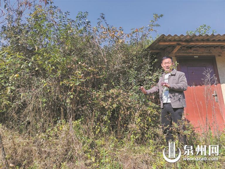 王添财在其伯父王溪顺的茶园里,这些茶园现多已荒废。