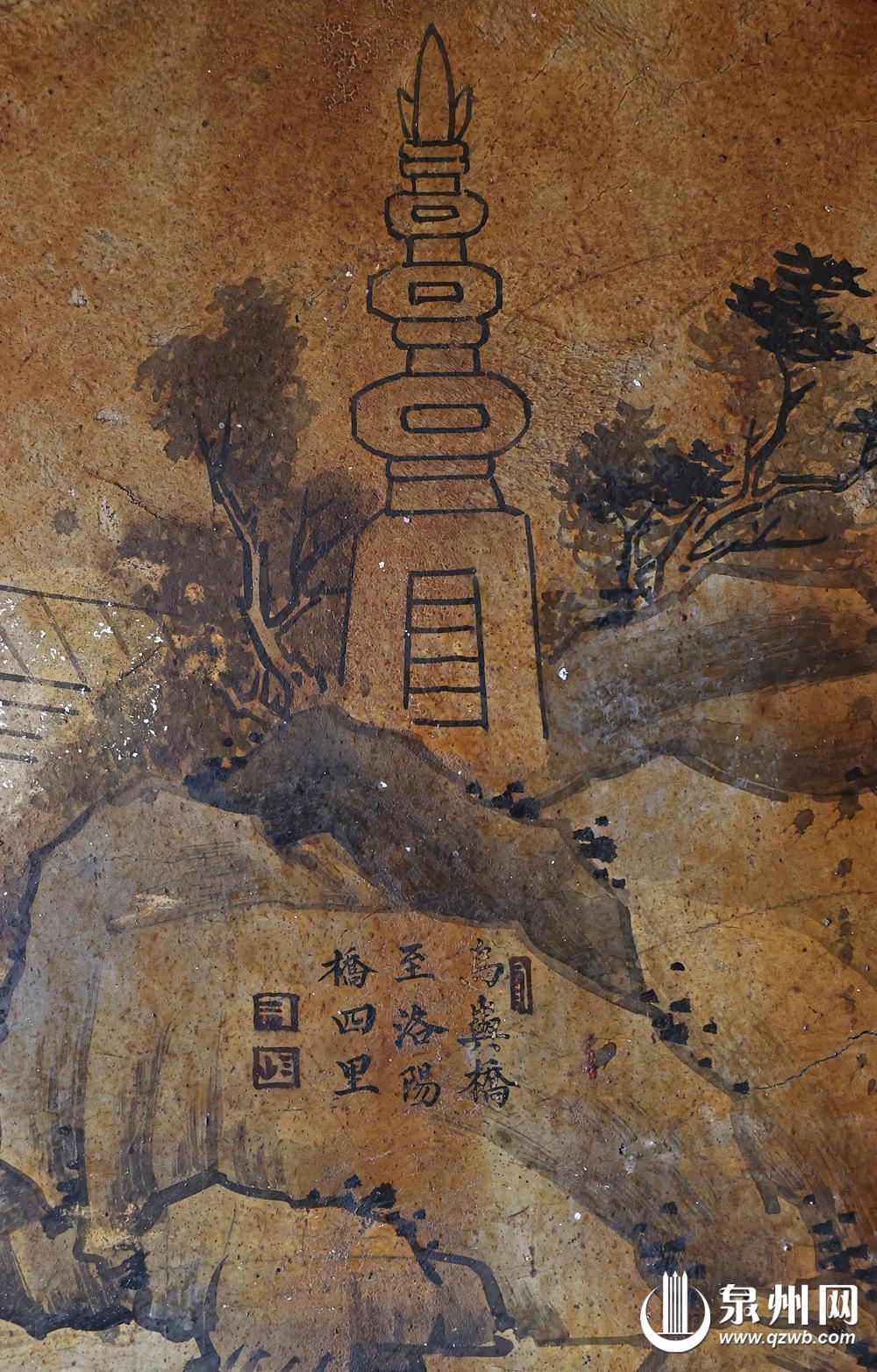 屋外石碑记载,1993年洛阳桥重修时,还曾以此画为依据恢复原貌。洛阳桥十几年守护者黄真真回忆,1993年之前,洛阳桥上铺了可以通车的钢筋水泥,1993年至1996年,洛阳桥经过修缮后方才恢复成石桥模样,“壁画中,桥头还有拱门,所以桥面、桥板并不是按照壁画修缮的,但不排除桥基、桥墩、桥梁板等曾按照壁画维修。”