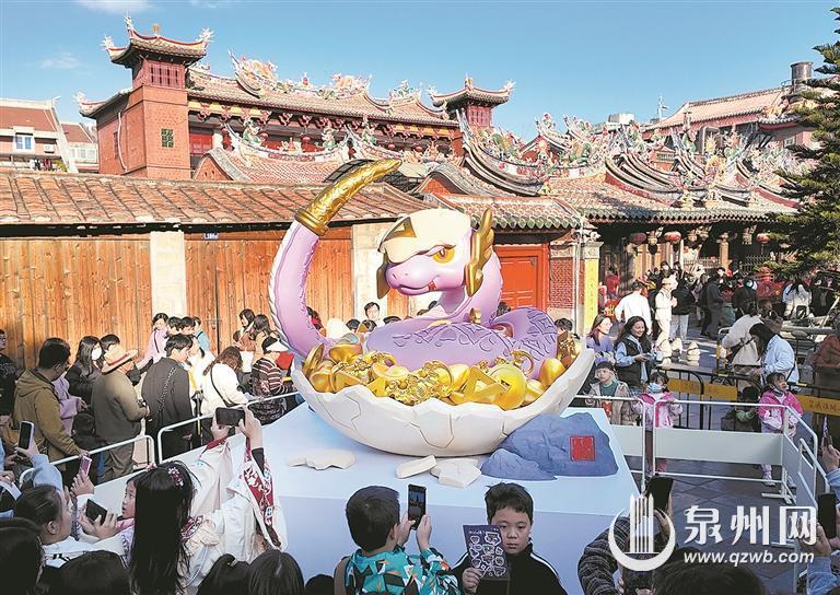 1月4日下午,“七彩刺桐蛇”中的老幺“鲤鲤”在万众期待中于泉州通淮关岳庙闪亮登场,引得一拨又一拨市民游客争相打卡拍照。当晚,央视新闻微信公众号还专门用图文推介泉州的“七彩刺桐蛇”。